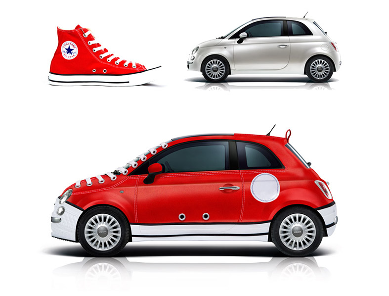 ¿Y si juntamnos en una sola imagen una zapatilla y un coche? El resultado, la composición fotográfico divertido que podéis ver.